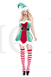 3 PC. Includes: Two tone velvet halter dress with faux white rim, matching hat, and belt
