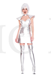 2 PC. includes: Mini wet look dress with shoulder pads and attached choker and back lace up thigh hi (4888)