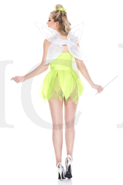 4 PC. includes: Lime green dress with hemline and tulle bottom, matching hair tie, fairy wings with shoulder straps, and wand