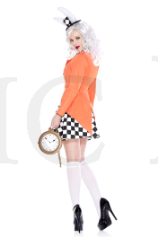 5 PC. includes: Yellow button crop top, gold detail long tail coat, checker print skirt, ears/hat headpiece, and bow choker