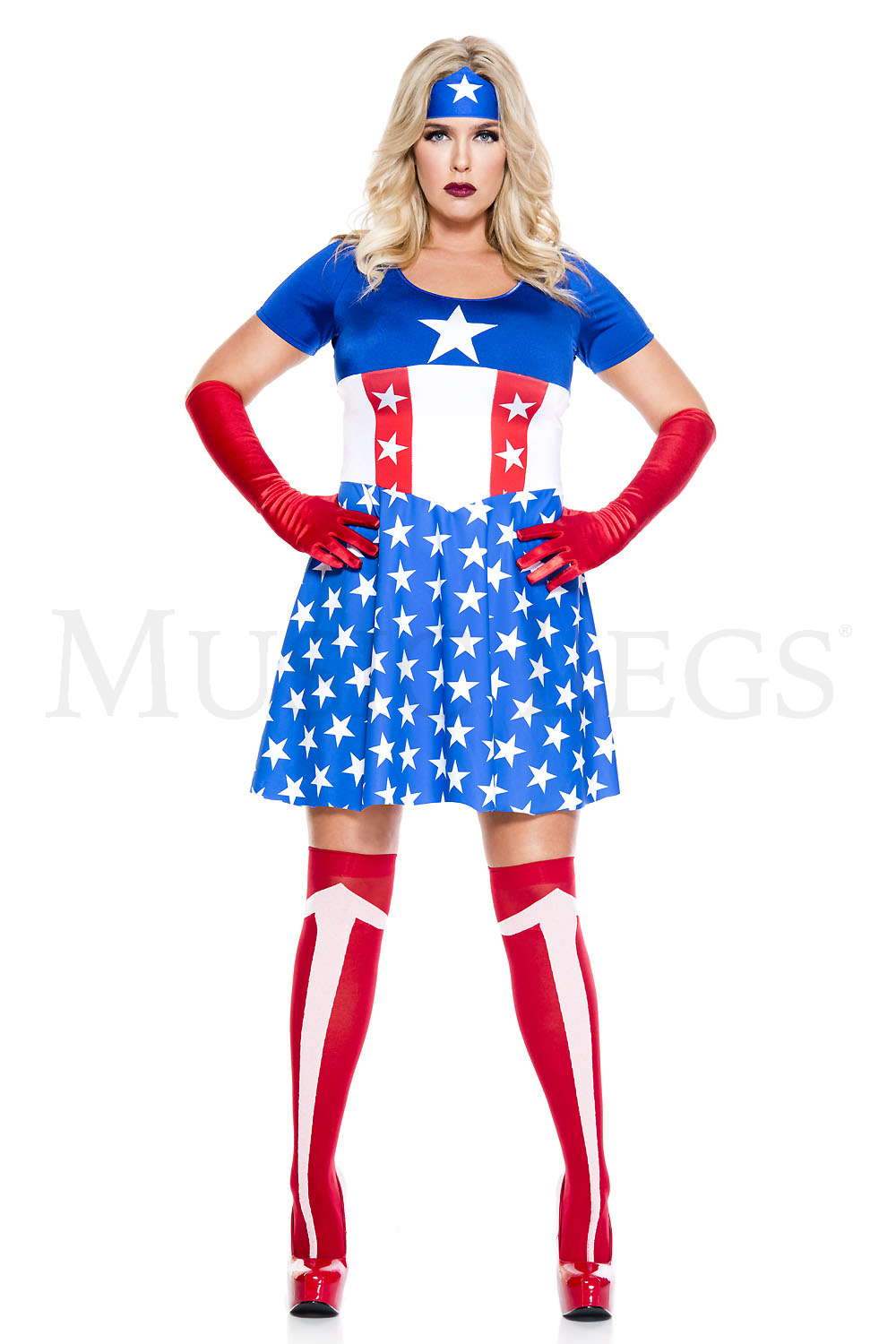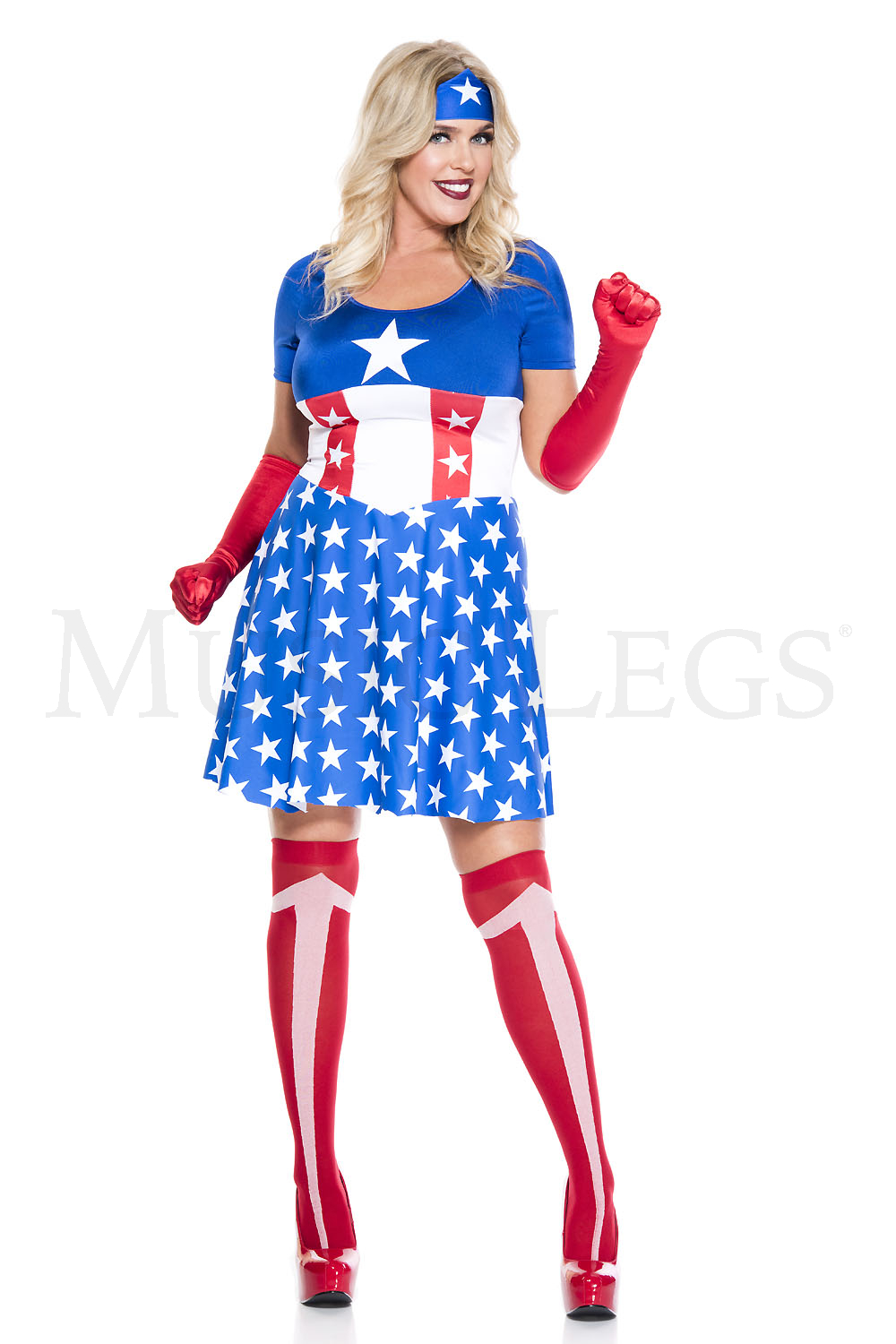 3 PC. Includes: Plus size star print dress, headband, and satin gloves