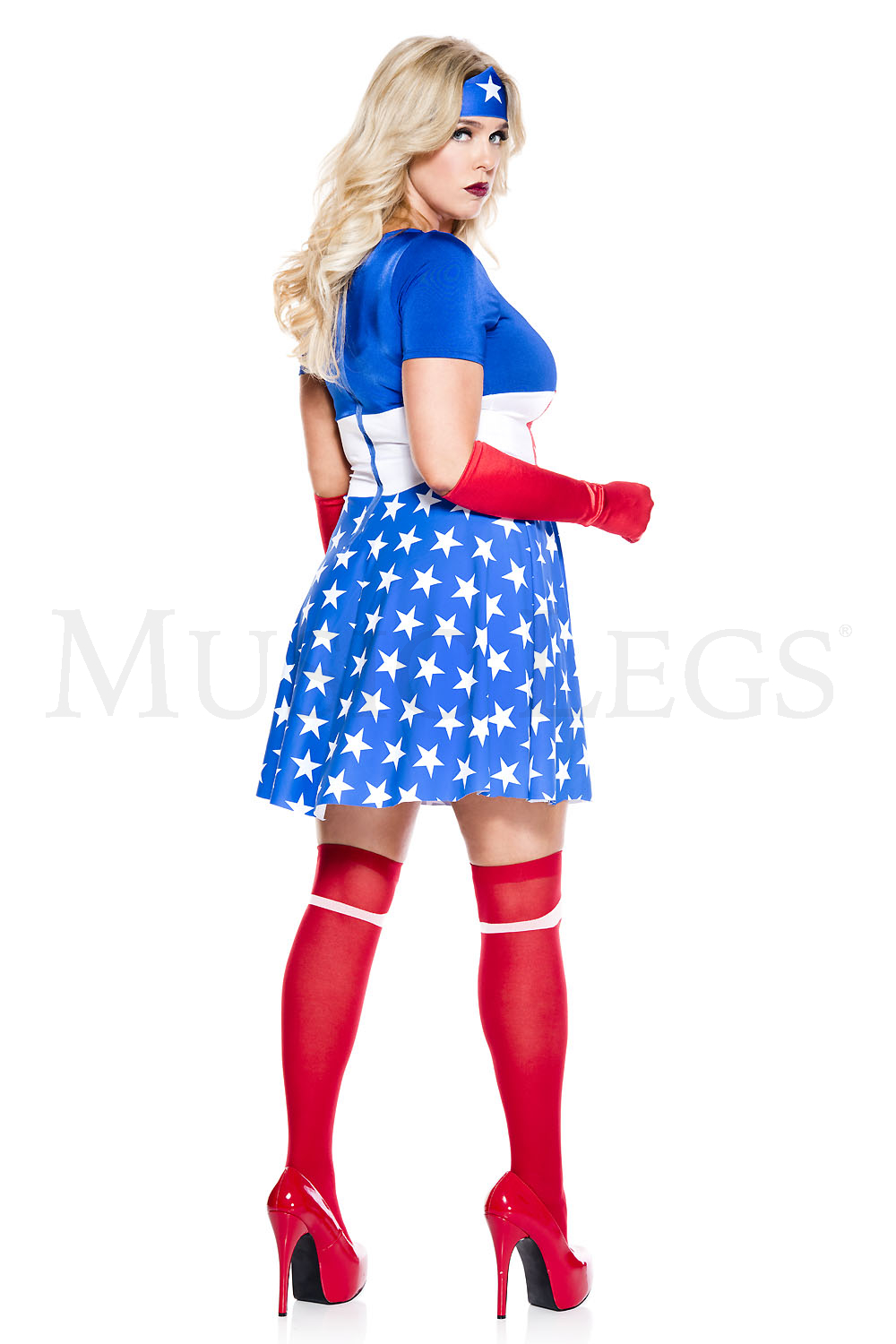 3 PC. Includes: Plus size star print dress, headband, and satin gloves