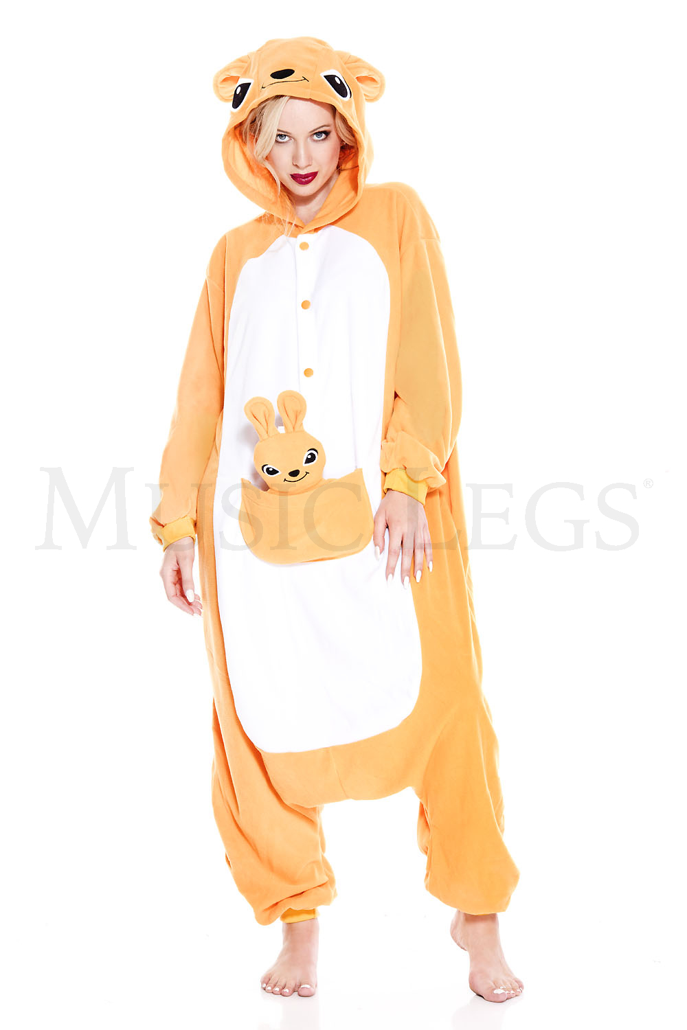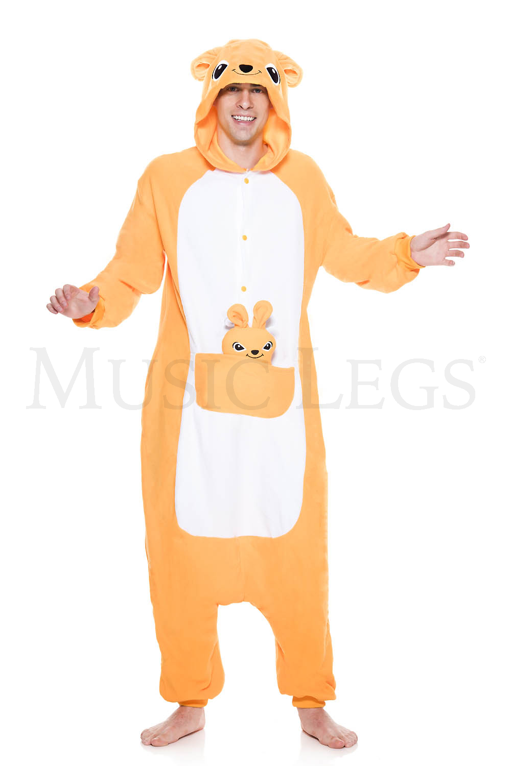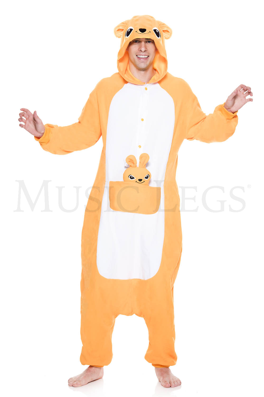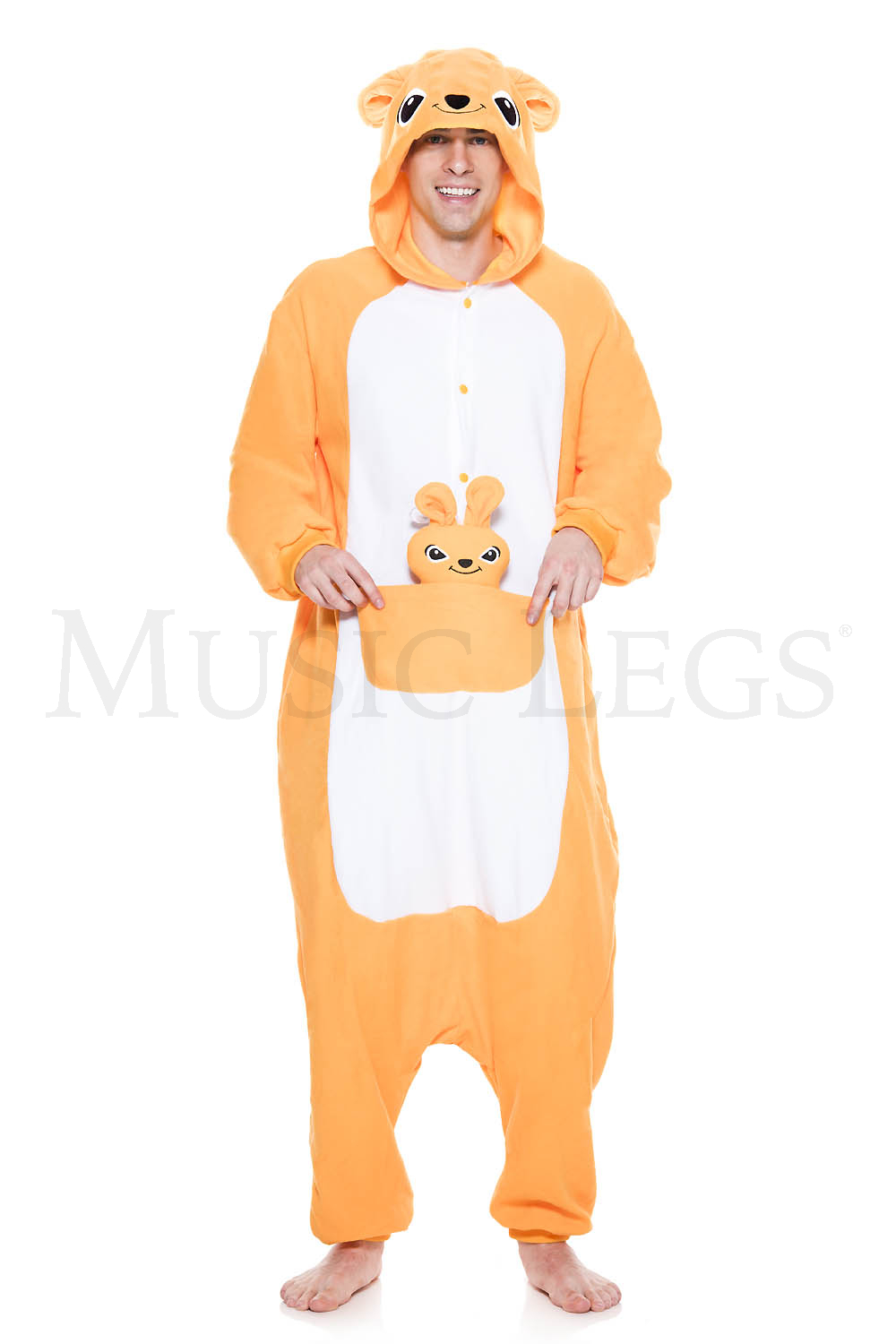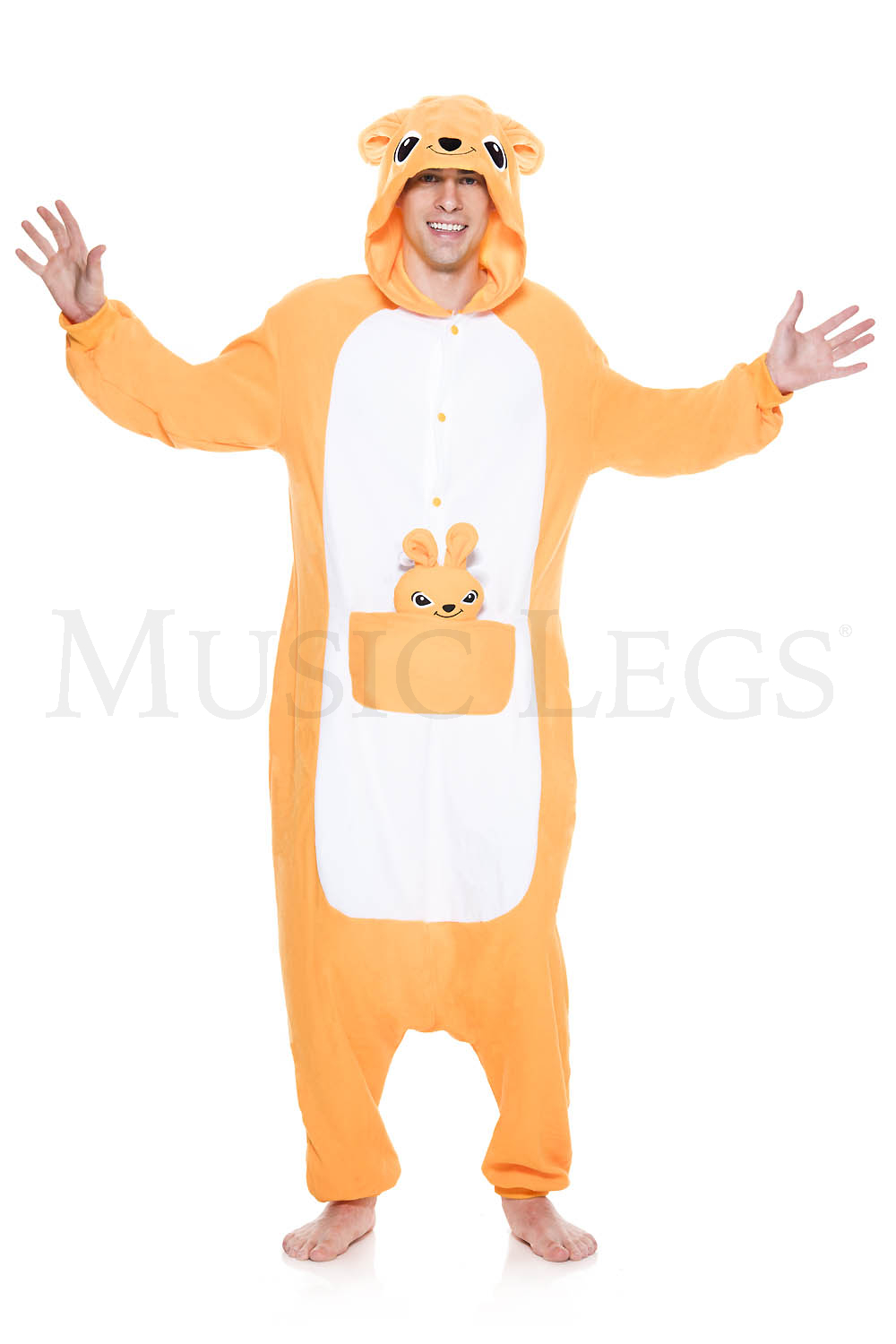 This kangaroo is not hopping around without its baby kangaroo in tow. This all orange Kangaroo is our only Kigurumi with a pouch in front. Hop in this kangaroo for the best time a marsupial could have.