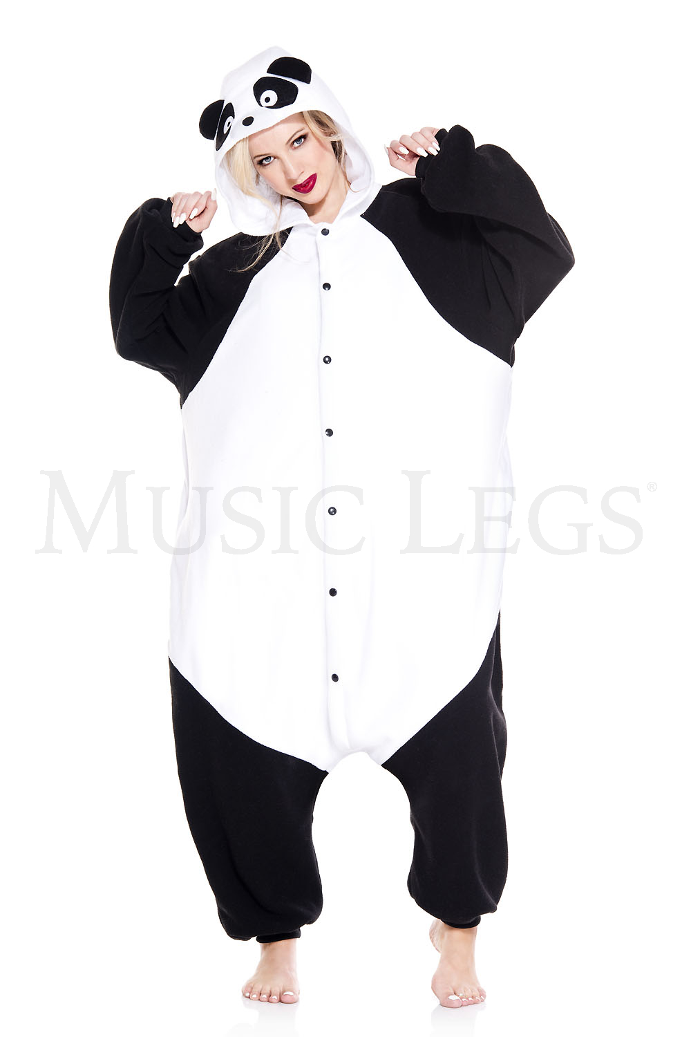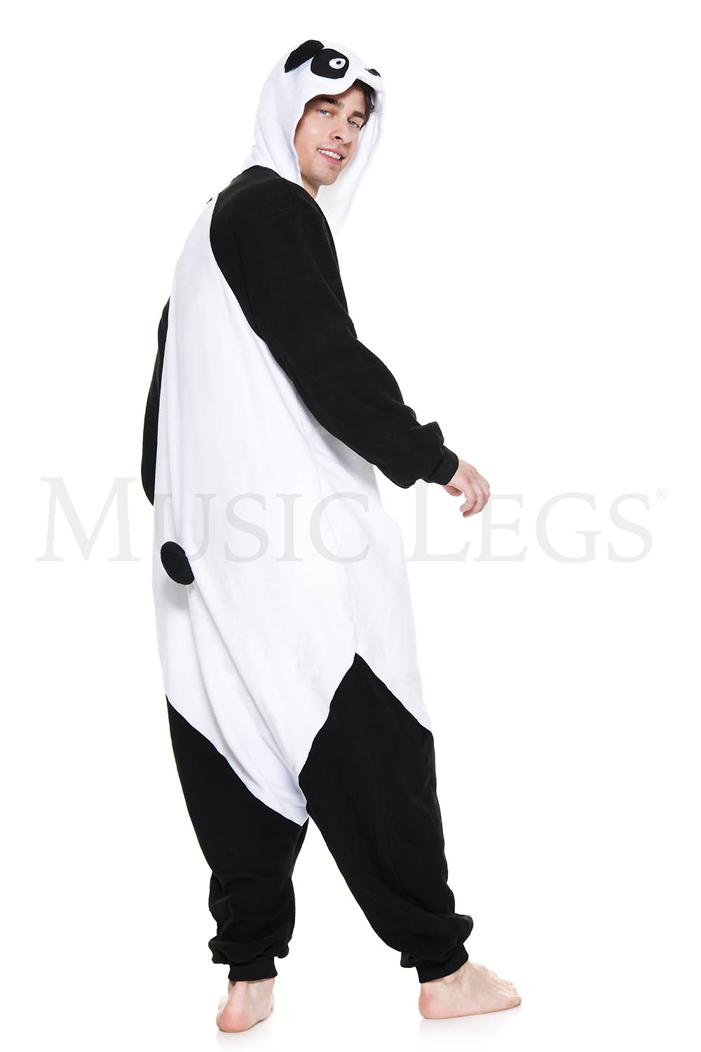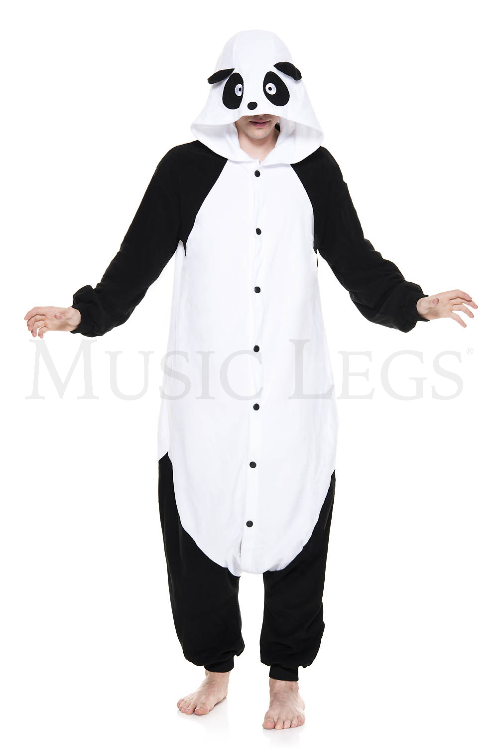 Rescue a panda from the wild and keep one in you closet Our panda is all black with a white face, belly, and cuffs.