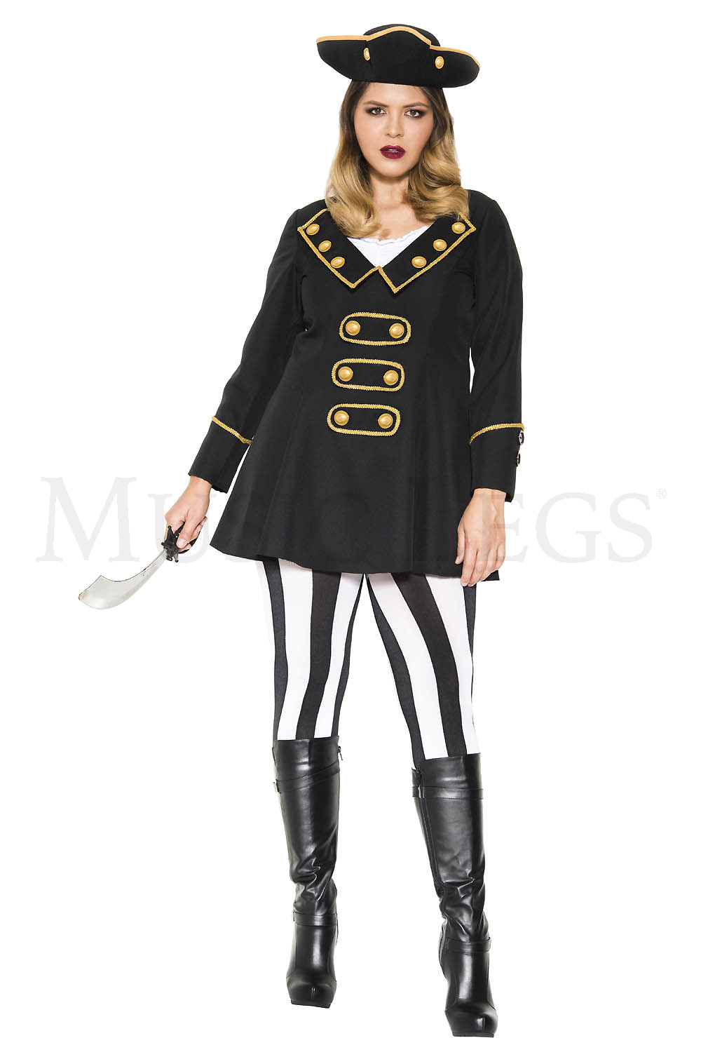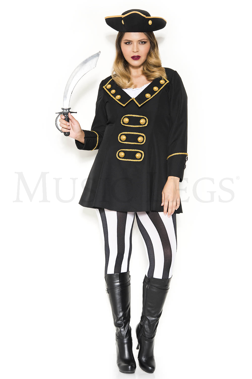3 PC. includes: Plus size button accents top with collar, hat, and striped leggings