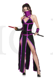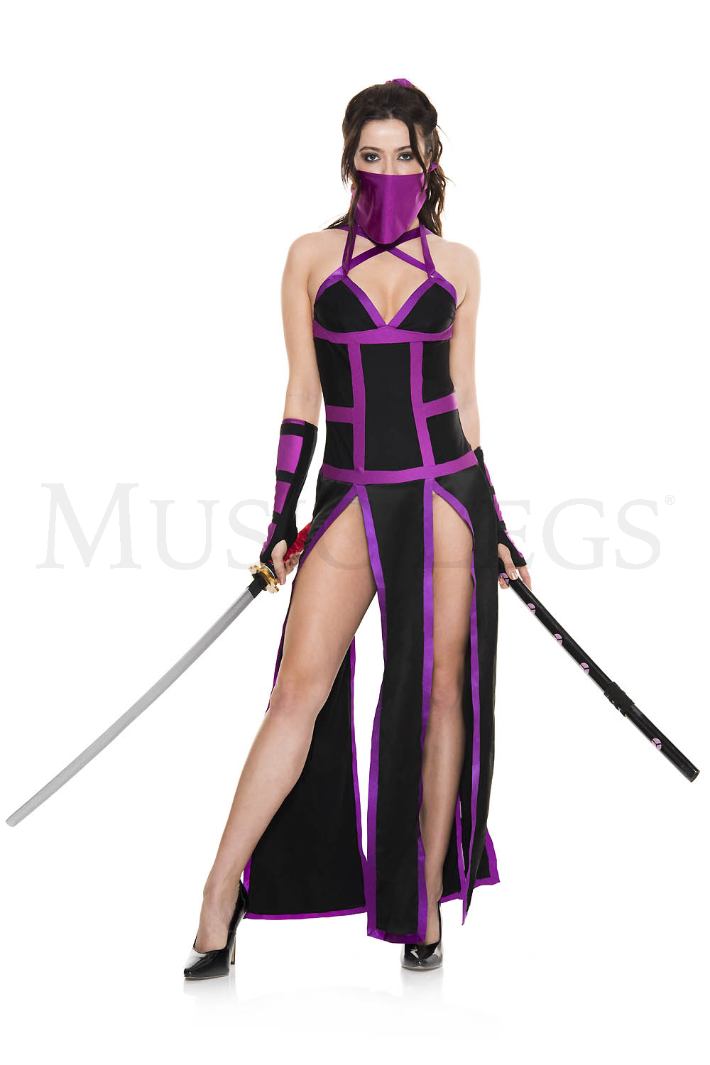4 PC. includes: Front and back high slit dress, hair tie, face mask, and matching arm warmers