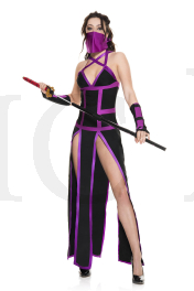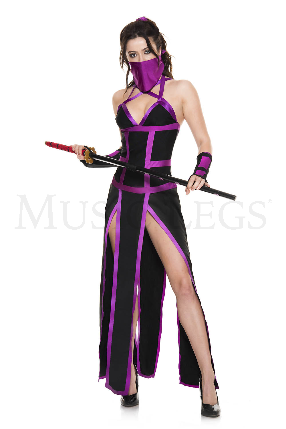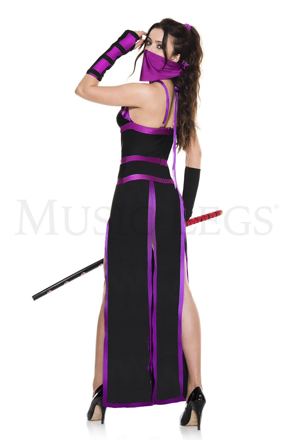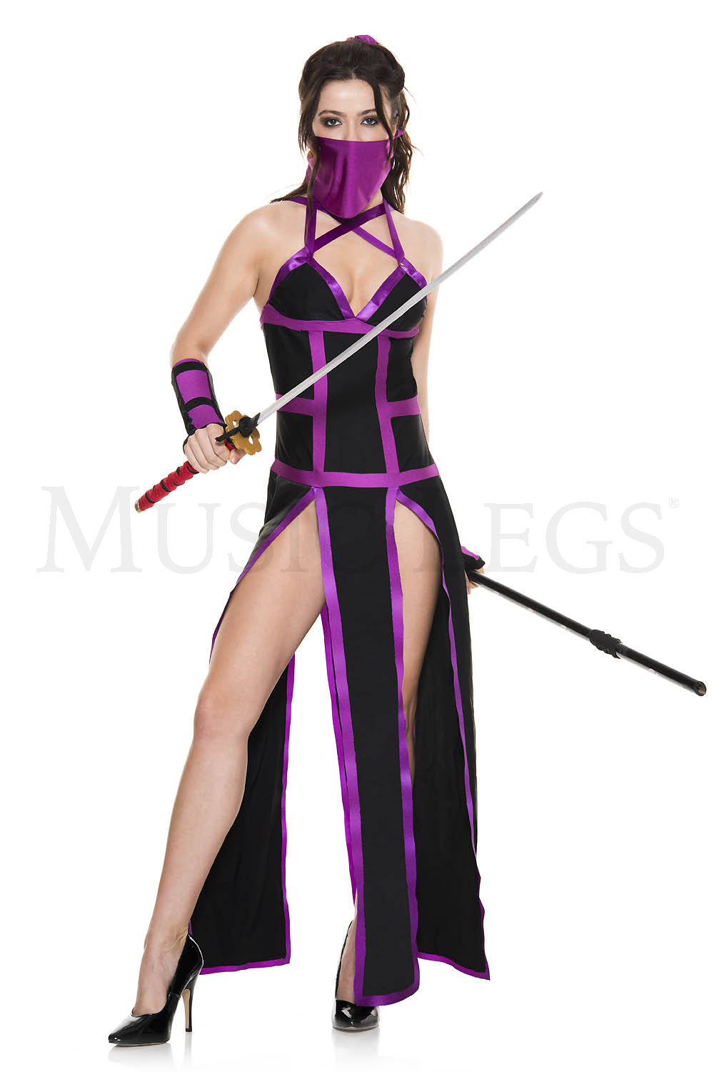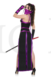4 PC. includes: Front and back high slit dress, hair tie, face mask, and matching arm warmers