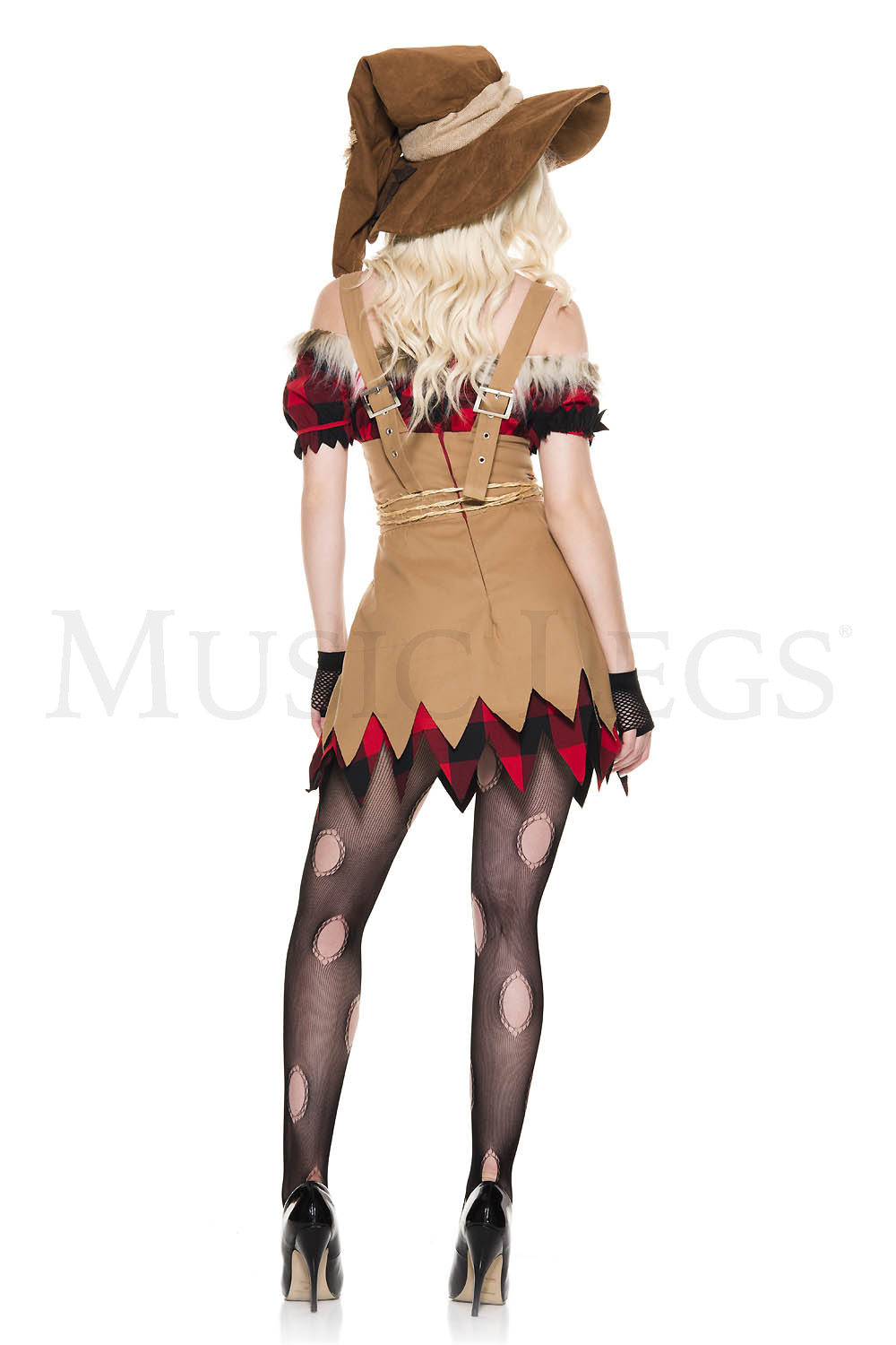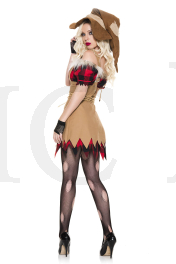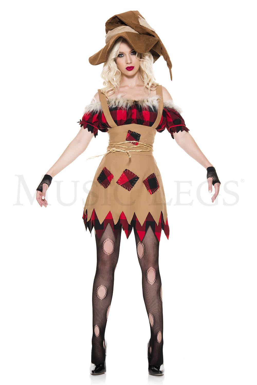 NEW! 5 PC. includes: Checker patch details dress with faux fur trim, suede oversize hat, rope belt, fingerless gloves, and big mesh hole pantyhose