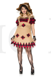 NEW! 5 PC. includes: Plus size checker patch details dress with faux fur trim, suede oversize hat, rope belt, fingerless gloves, and big mesh hole pantyhose