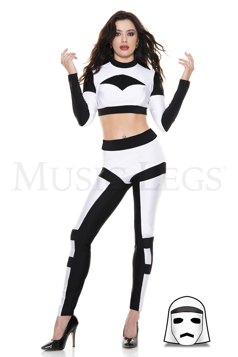 2 PC. includes: Black and white crop top with matching pants