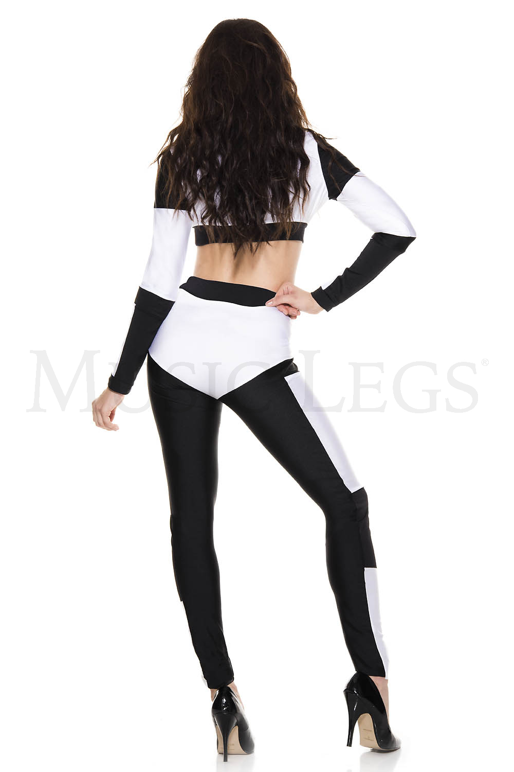 2 PC. includes: Black and white crop top with matching pants