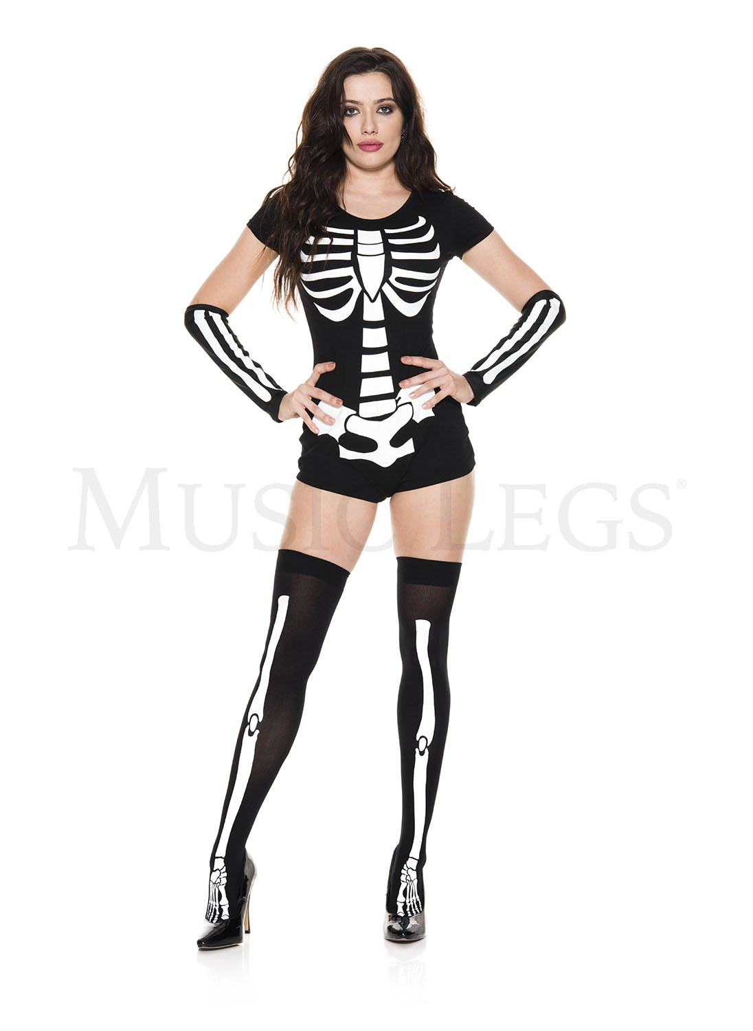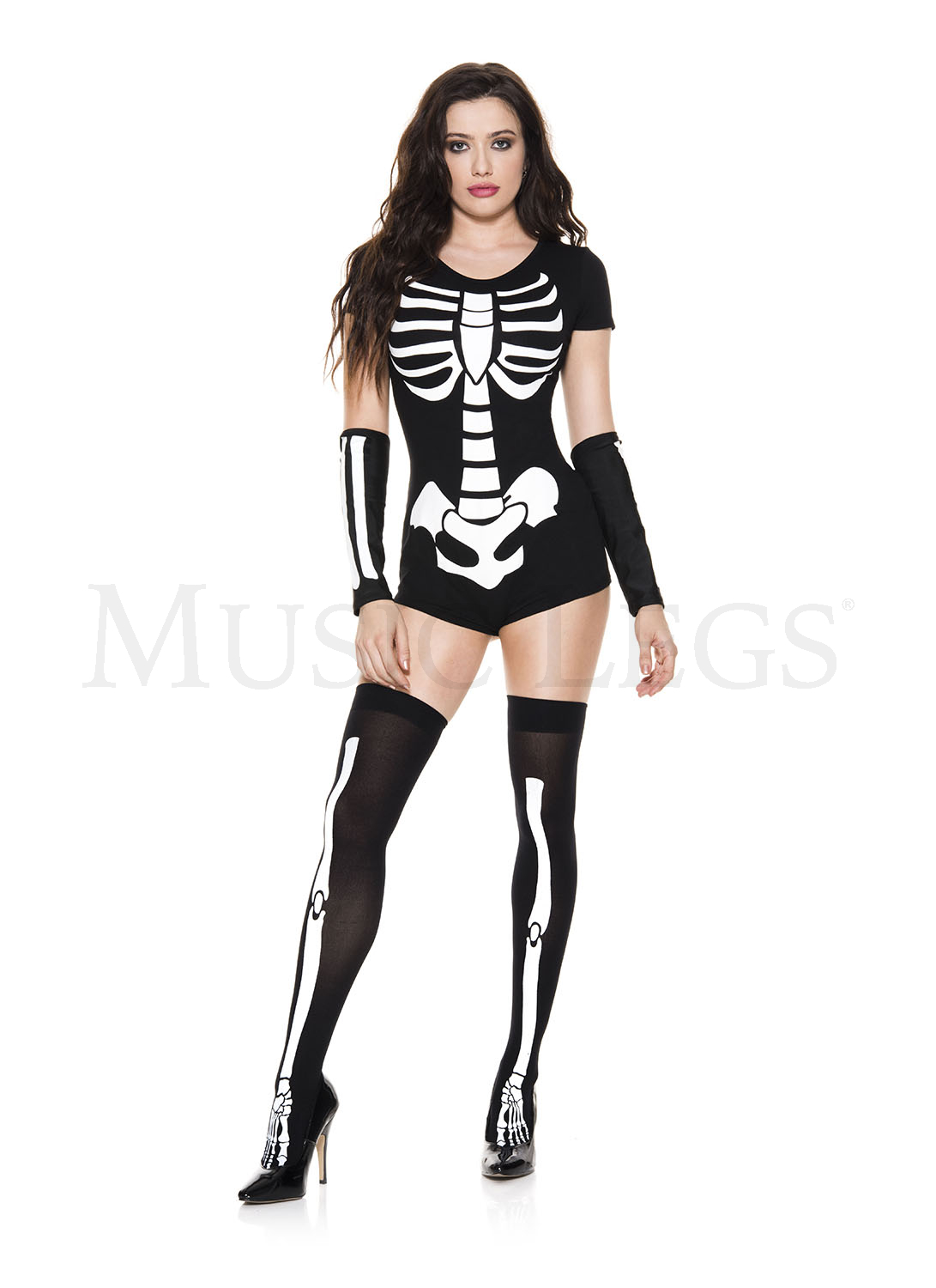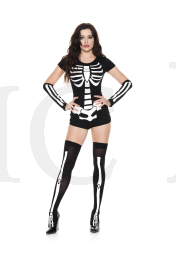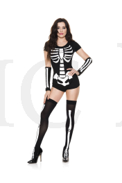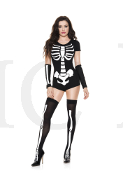 NEW! 3 PC. includes: Skeleton print bodysuit, matching arm warmers, and thigh hi