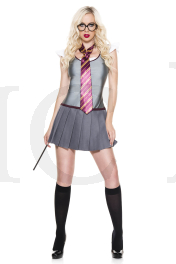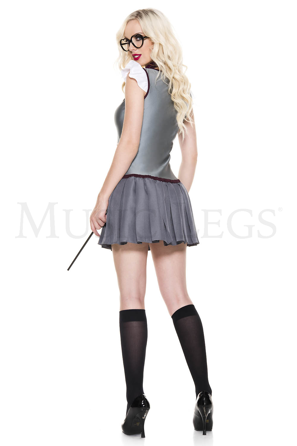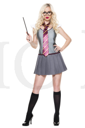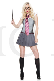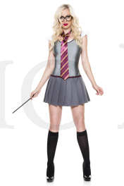 NEW! 4 PC. includes: Pleated silver dress, satin tie, glasses, and wand