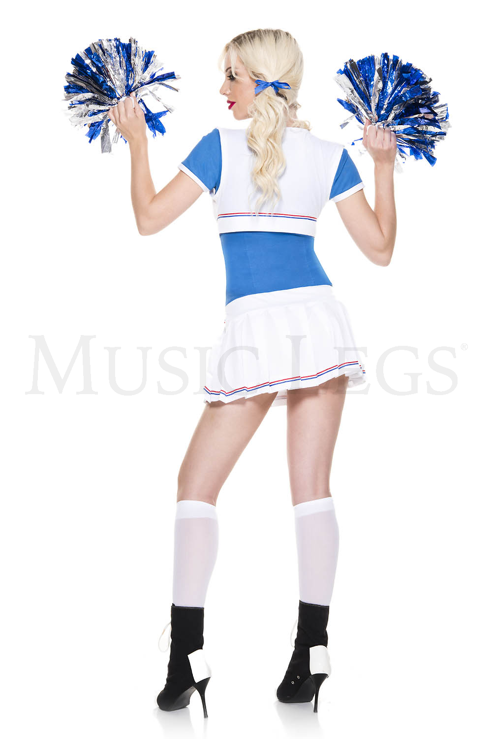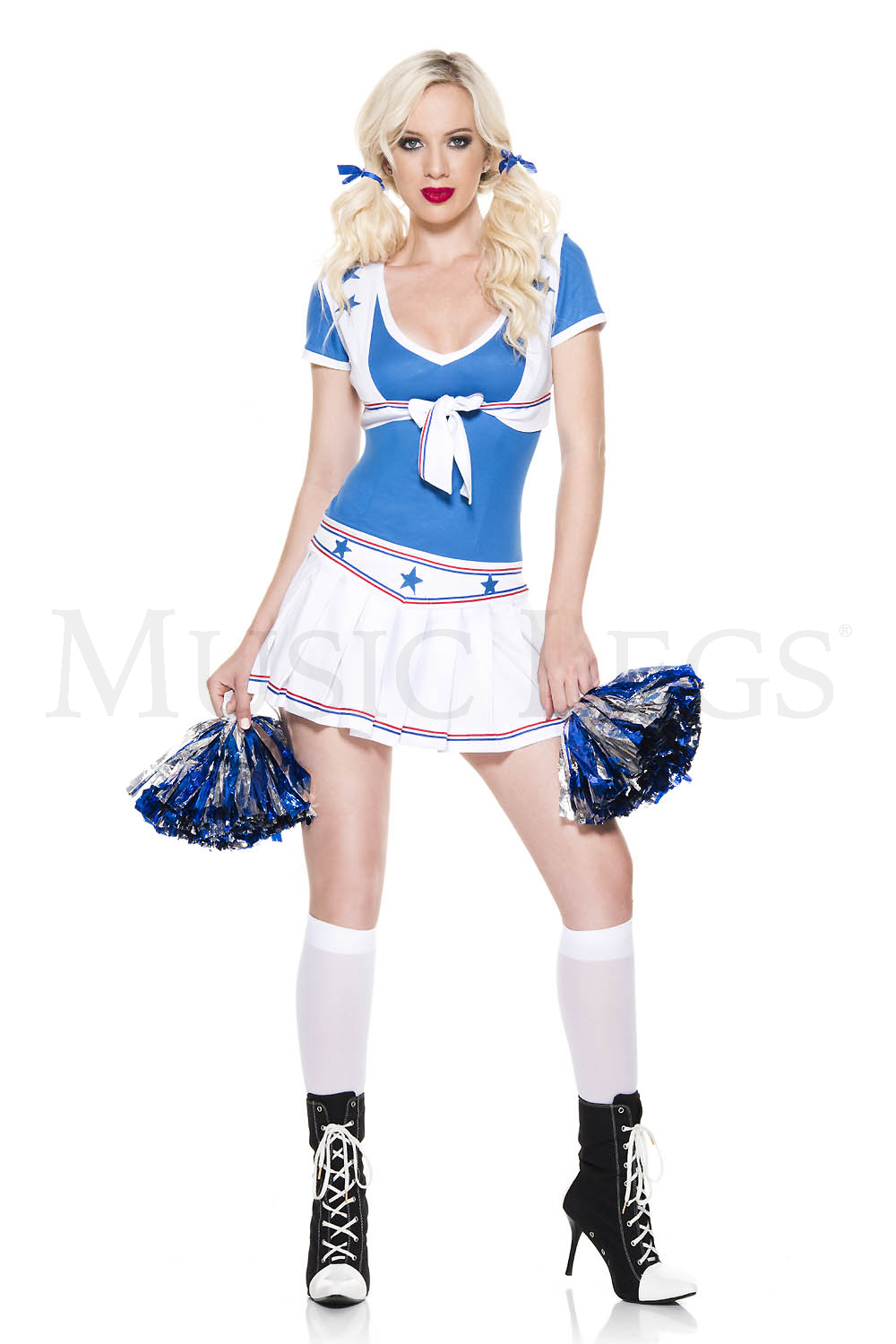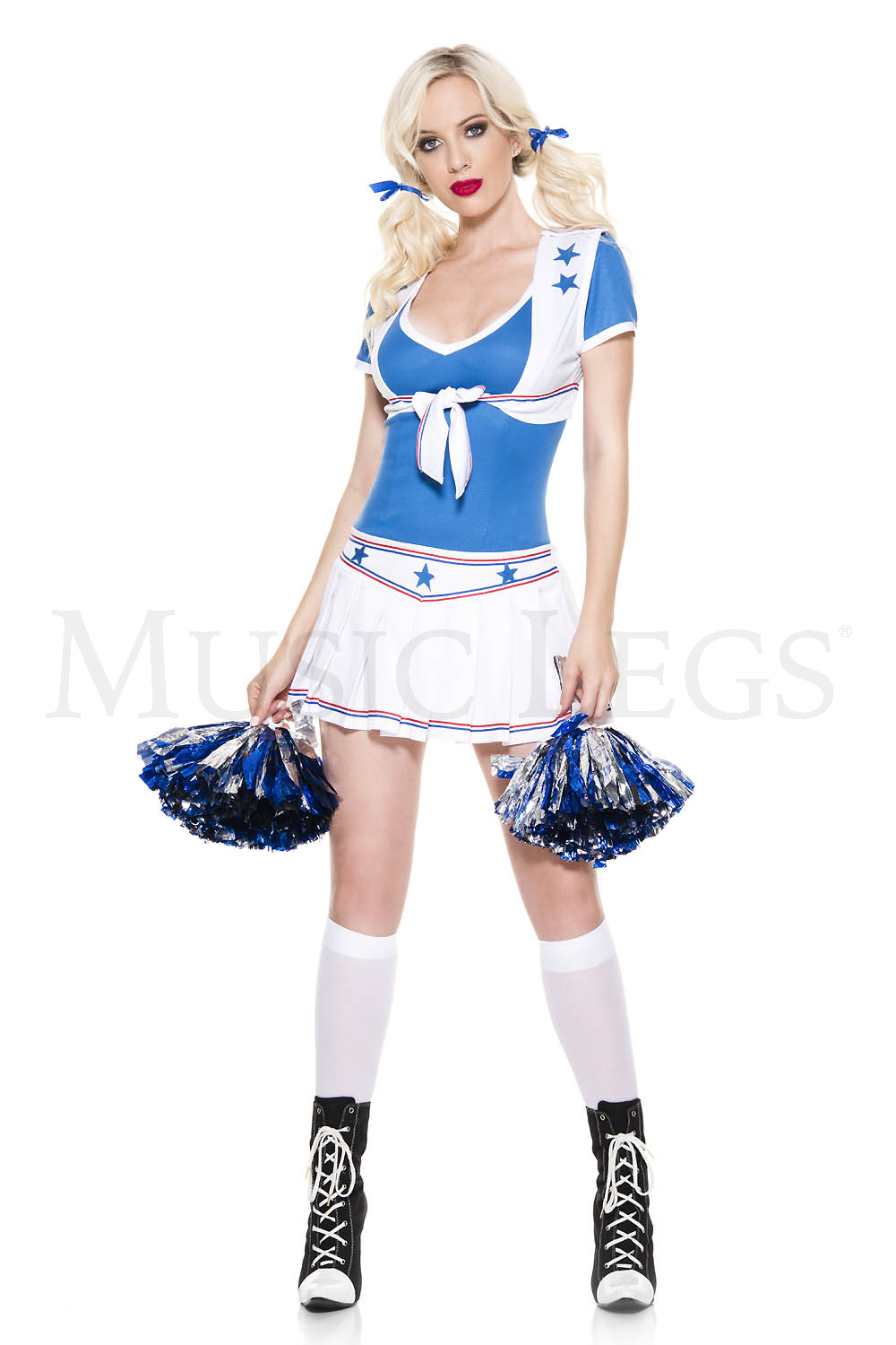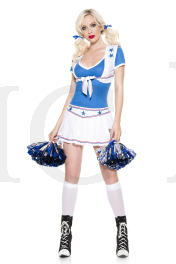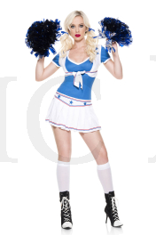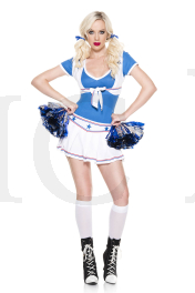 NEW! 5 PC. includes: Pleated star print skirt, blue top, matching vest, ties, and pom poms