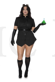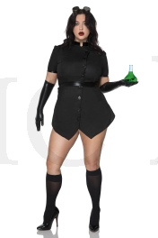 4 PC. includes: Plus size button up dress with gloves, belt and goggle
