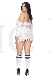1 PC. includes: Plus size tattered smiley face design dress with off the shoulder sleeves and halter straps