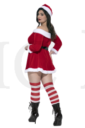 3 PC. includes: Plus size off the shoulder velvet dress with adjustable straps, hat, and belt with faux rhinestone buckle