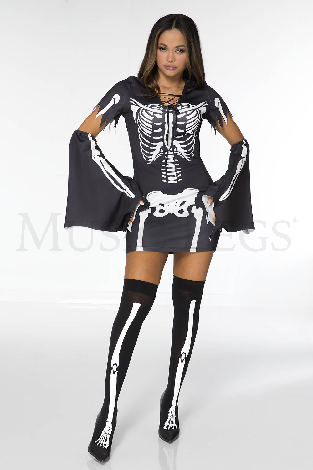 2 PC. includes: Skeleton print dress, and matching arm warmers (4305 Stocking sold separately)