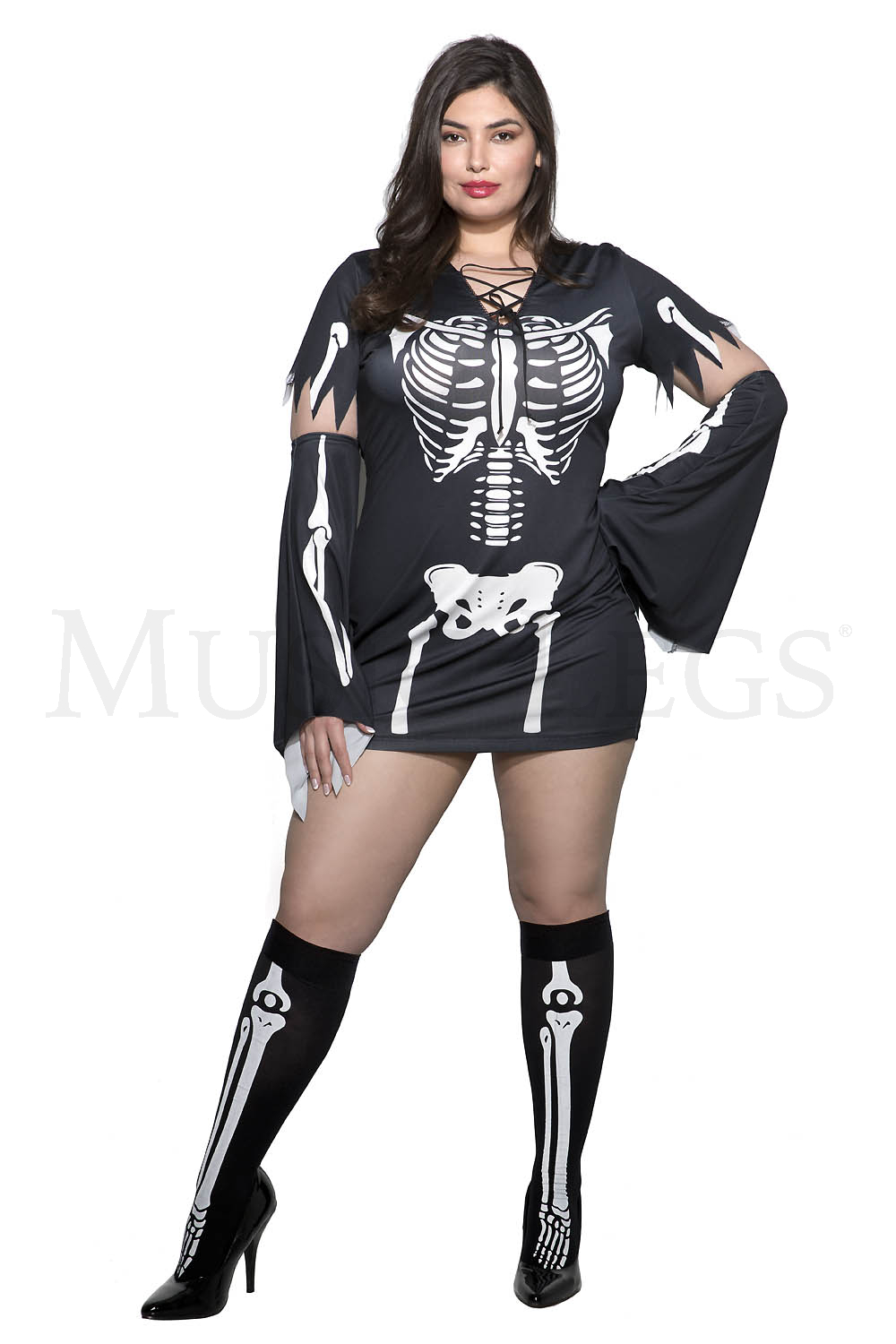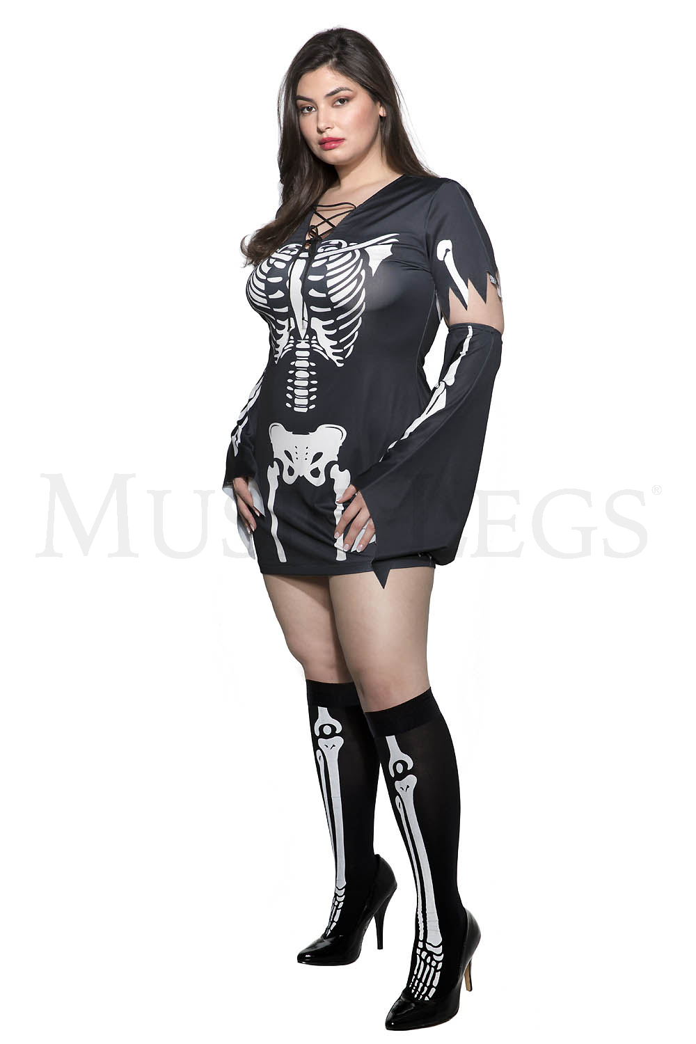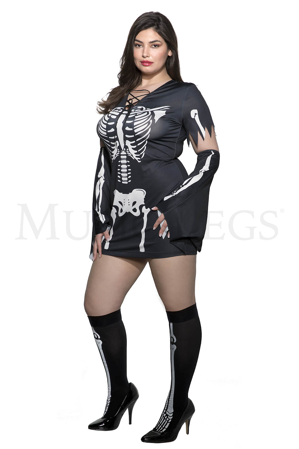 2 PC. includes: Plus size skeleton print dress, and matching arm warmers (5305 Stocking sold separately)