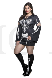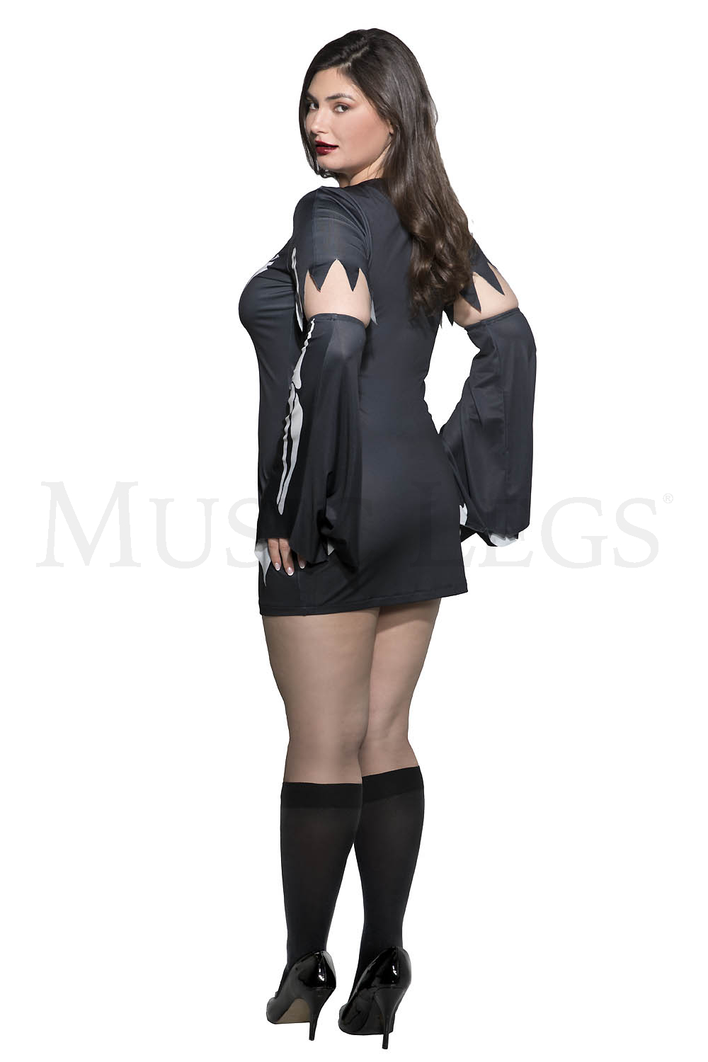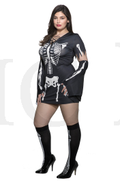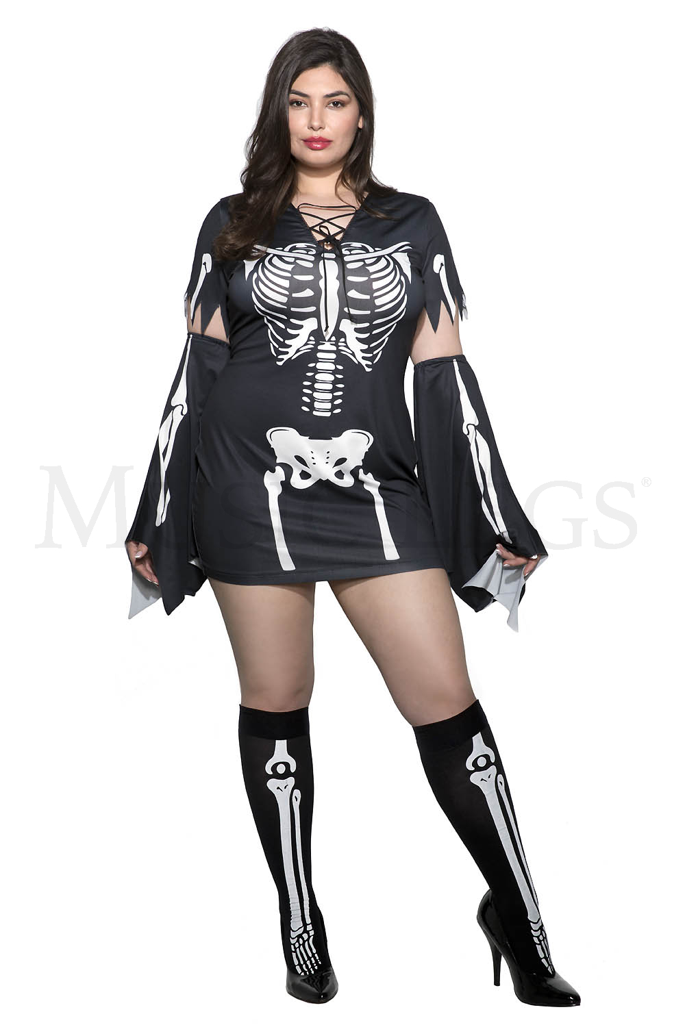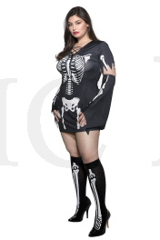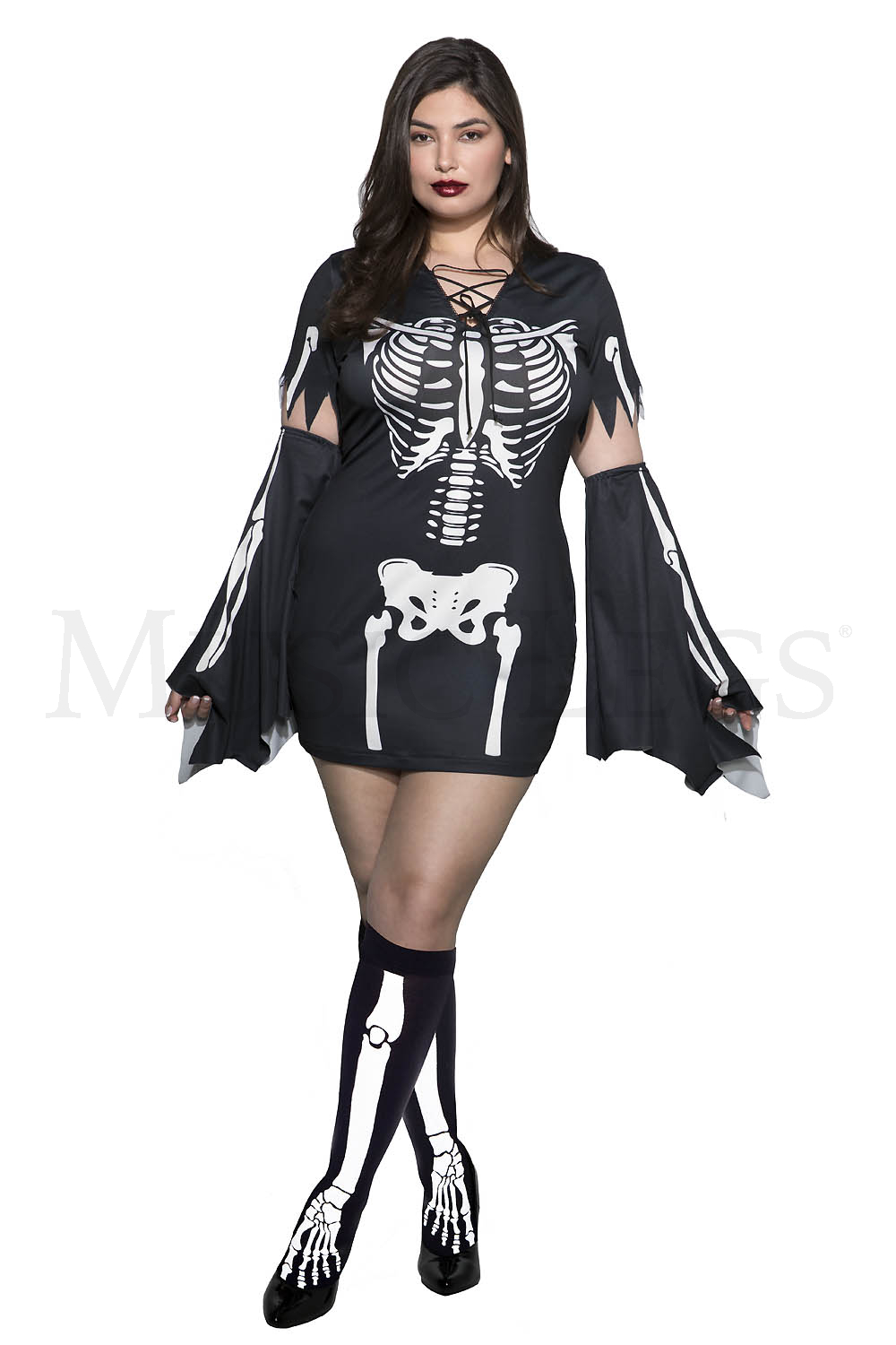 2 PC. includes: Plus size skeleton print dress, and matching arm warmers (5305 Stocking sold separately)
