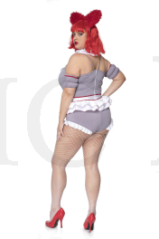 4 PC. includes: Plus size gray dress with white rufe trims, romper, armbands, headband, and choker