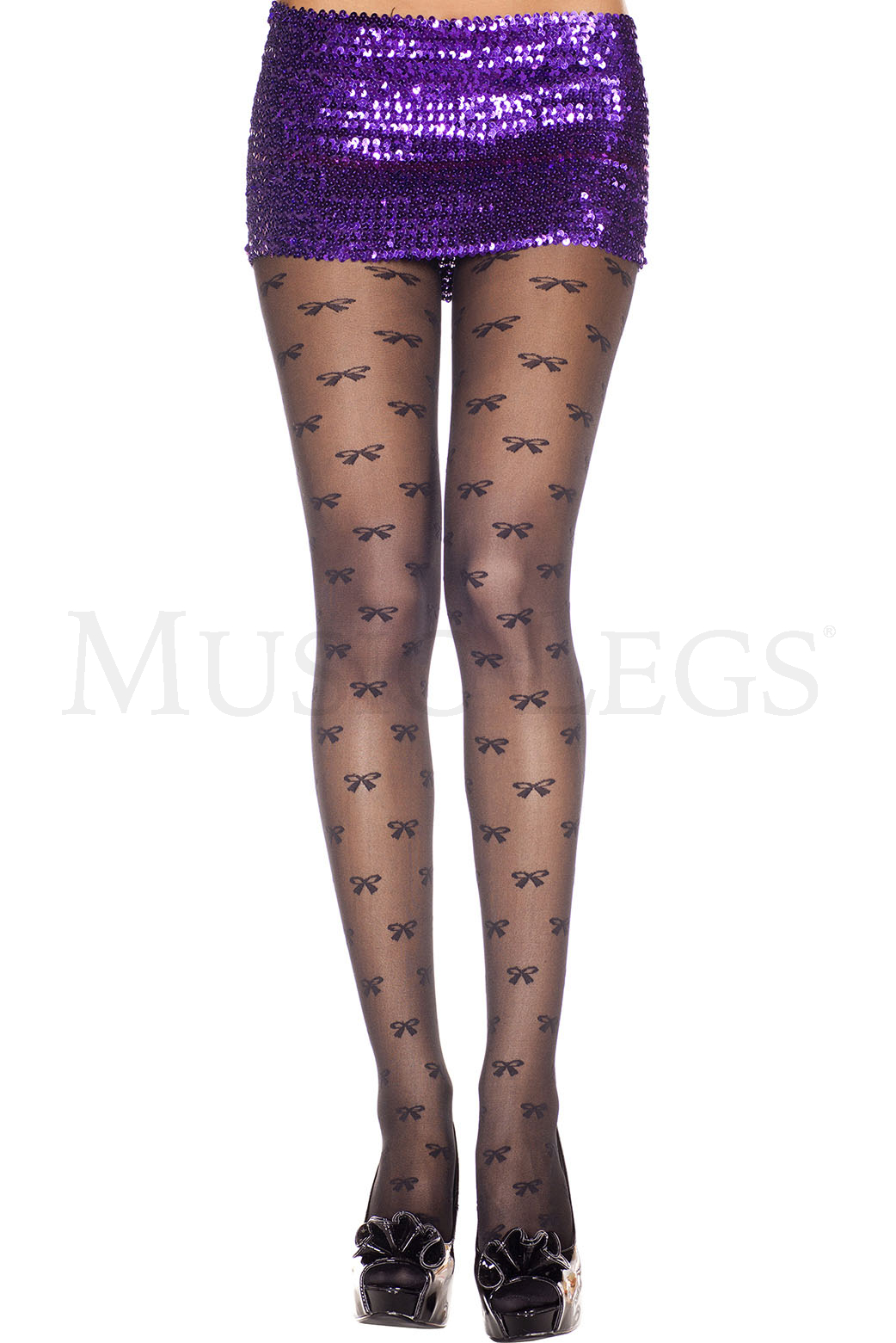 Bow print sheer spandex pantyhose