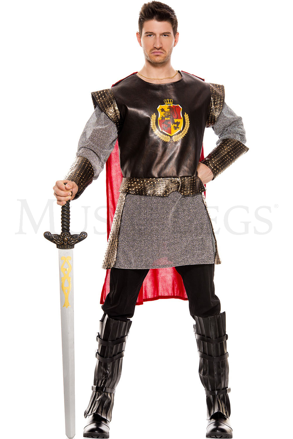 This three piece Men's Undefeated Roman Warrior costume features a gold studded tunic with epaulette, matching gauntlets and a red cape. (Sword and boot covers not included.)