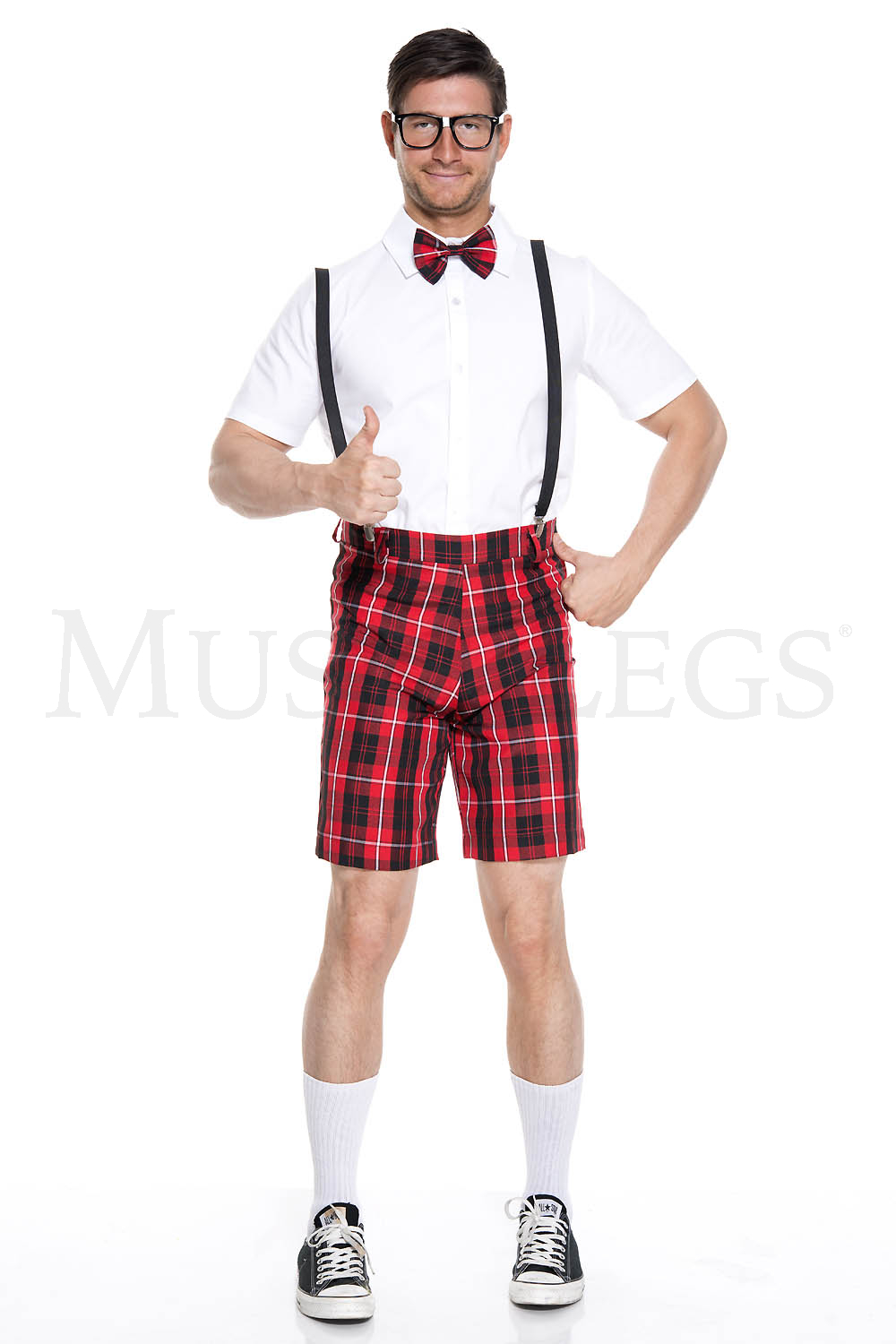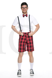 4 PC. Classroom nerd Includes: suspender plaid shorts with shirt and bow tie