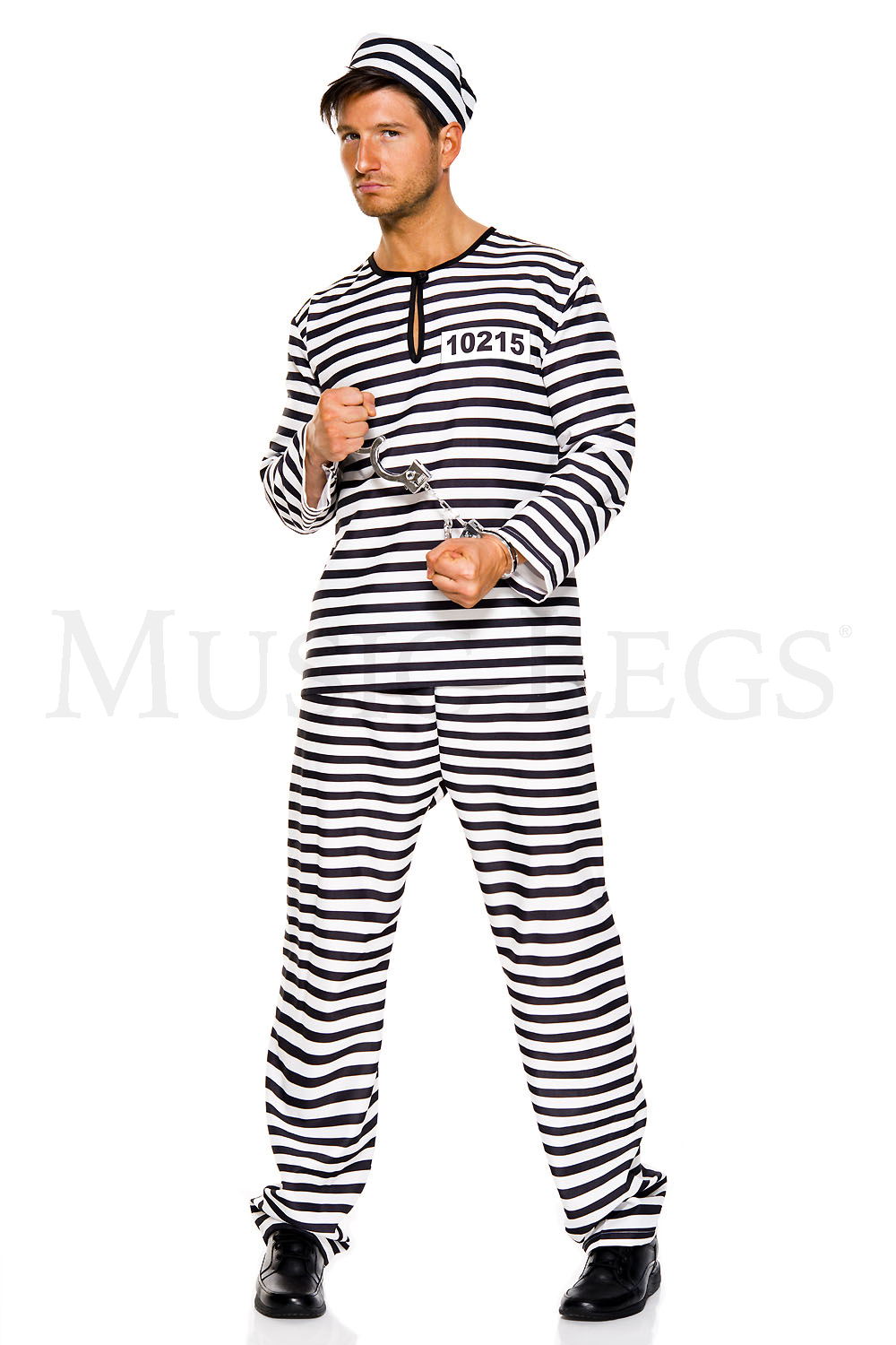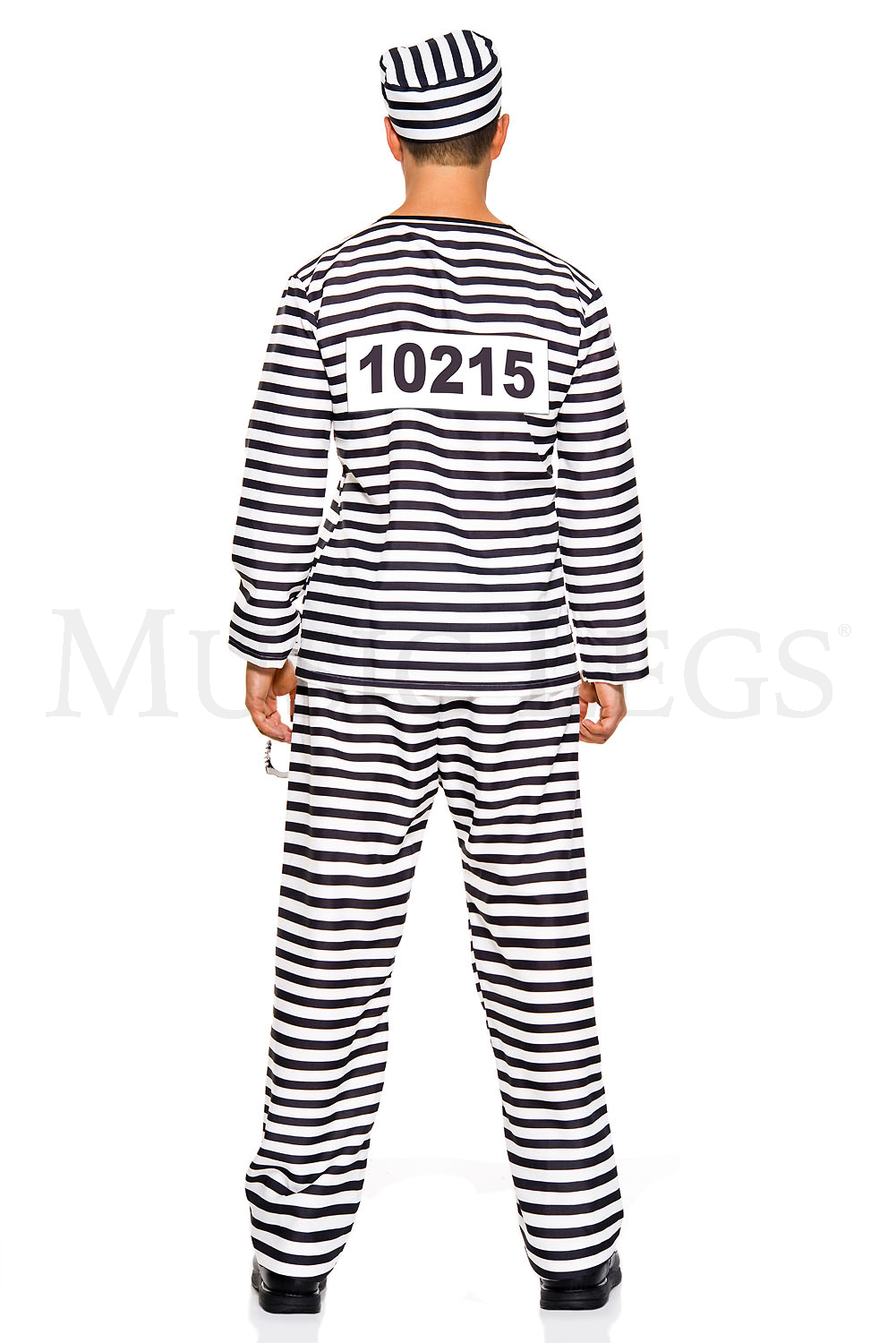 4 PC. Prison mate Includes: striped shirt with matching pants, hat and handcuffs