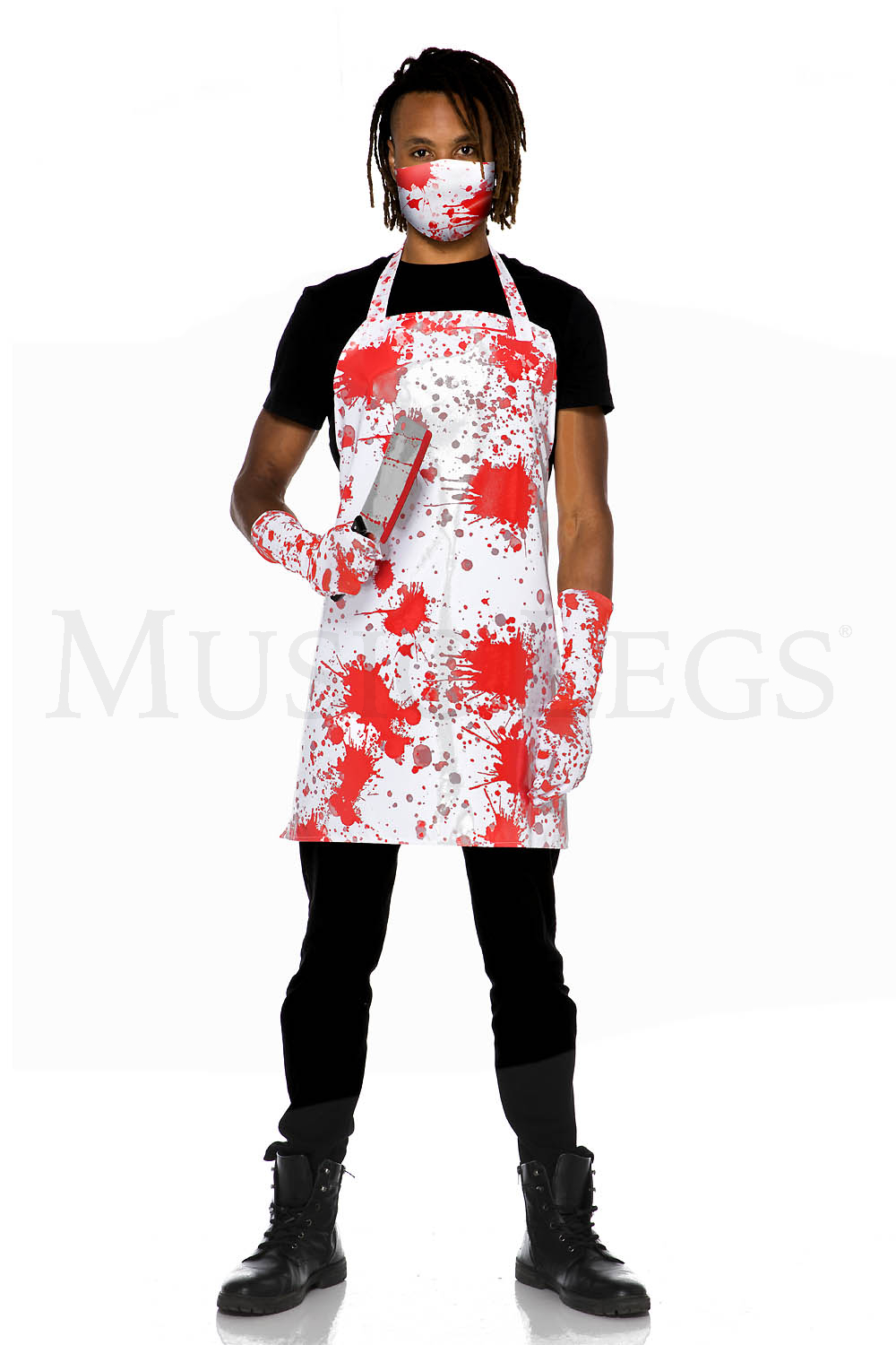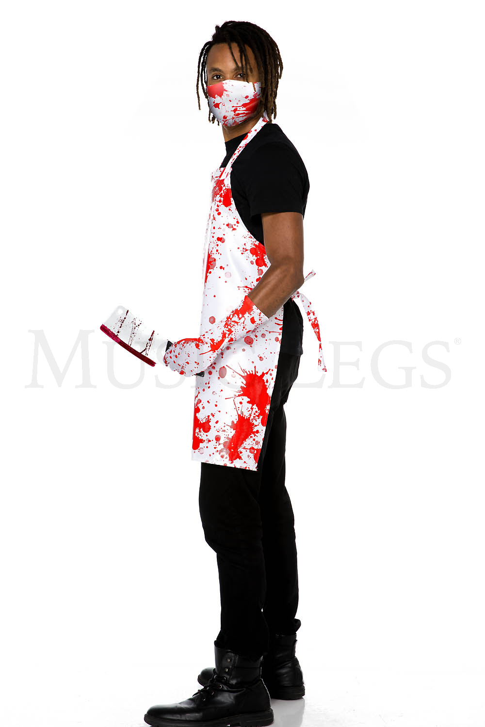 5 PC. includes: Bloody apron, gloves, face mask, shirt, prop cleaver