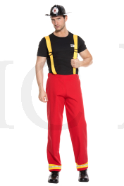 Turn up the heat in the Men's Firefighter Hero costume which includes suspender pants with reflective trim, t-shirt, and hat.