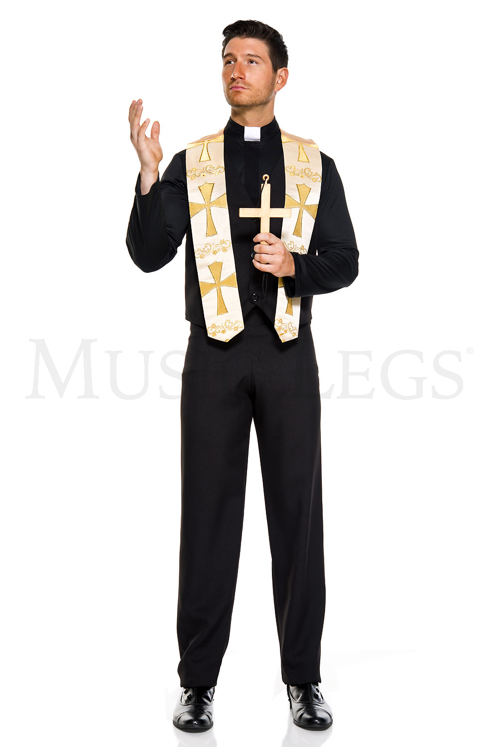 5 PC. Priest costume Includes: priest shirt with pants, vest, sash and cross