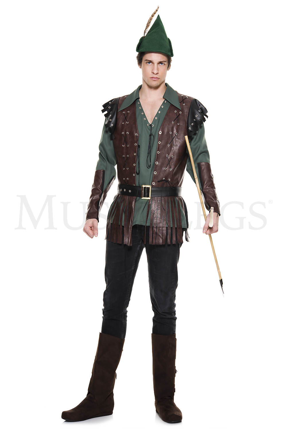 NEW! 5 PC. includes: Long sleeve collar top, shredded wet look vest with all over metal rings, matching gauntlets, belt, and hat with feather accent