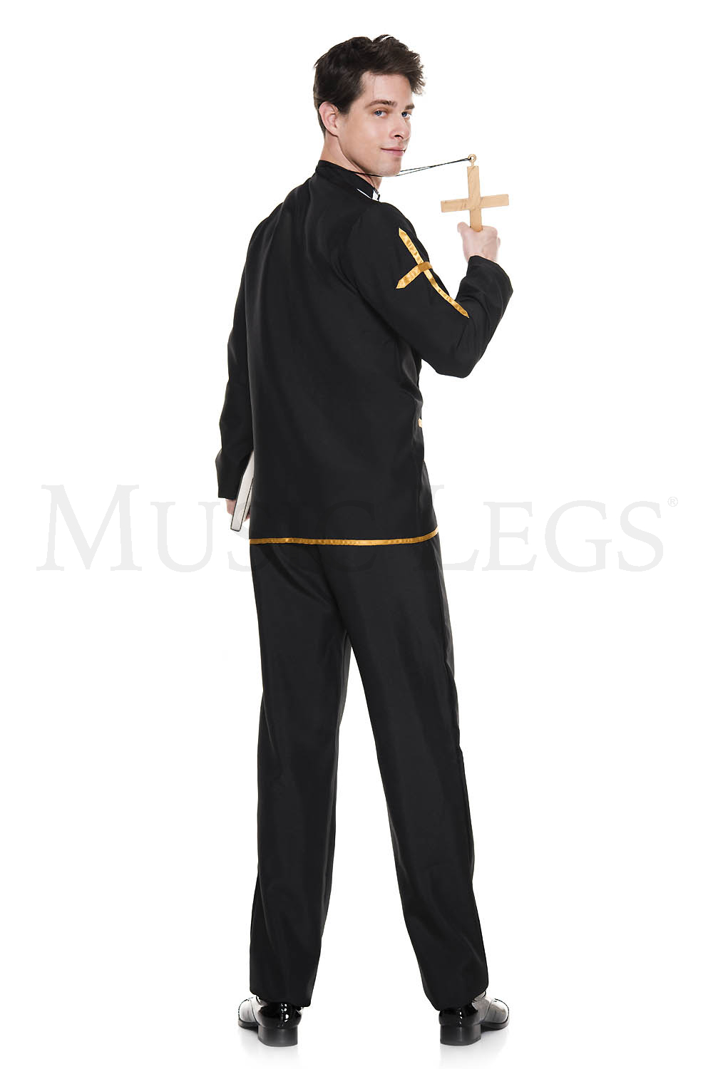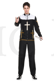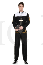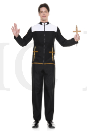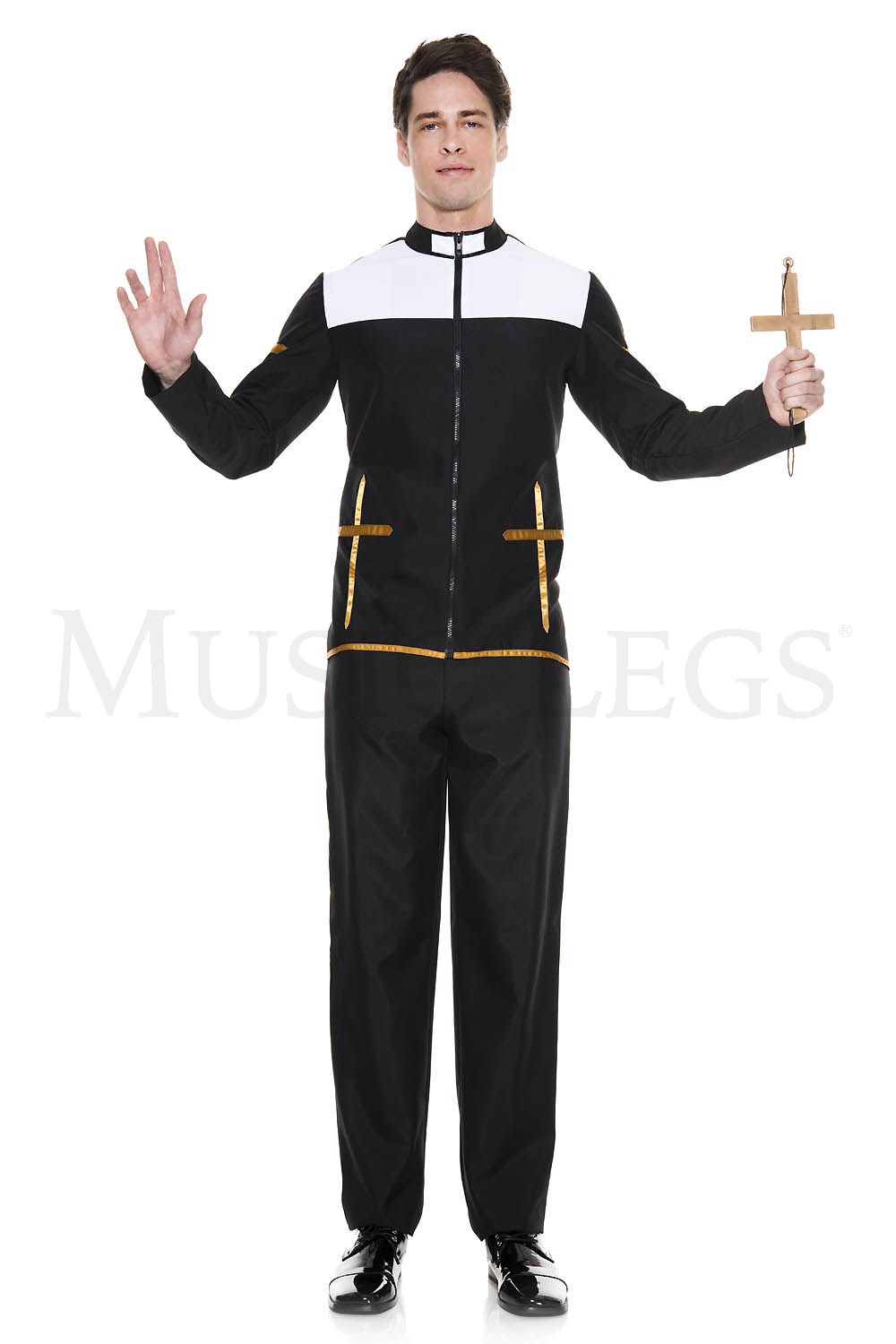 NEW! 3 PC. includes: Black, white, and gold priest top, pants, and cross