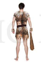 3 PC. includes: Tiger print jagged hem dress with faux fur trim, belt, and wrist cuffs