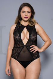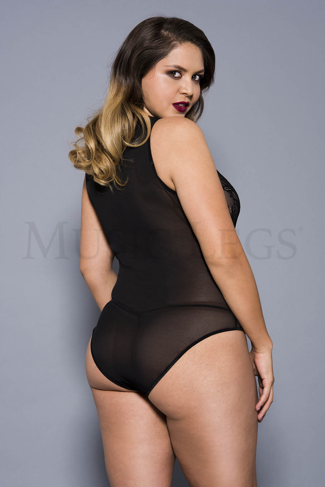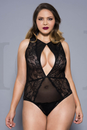 Plus size front keyhole opening lace teddy with sheer back (G-string not included)
