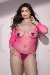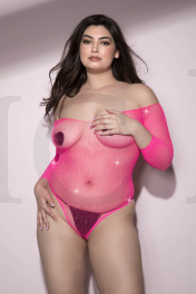 NEW! Plus size fishnet and rhinestone off the shoulder bodysuit (G-string and pasties not included)